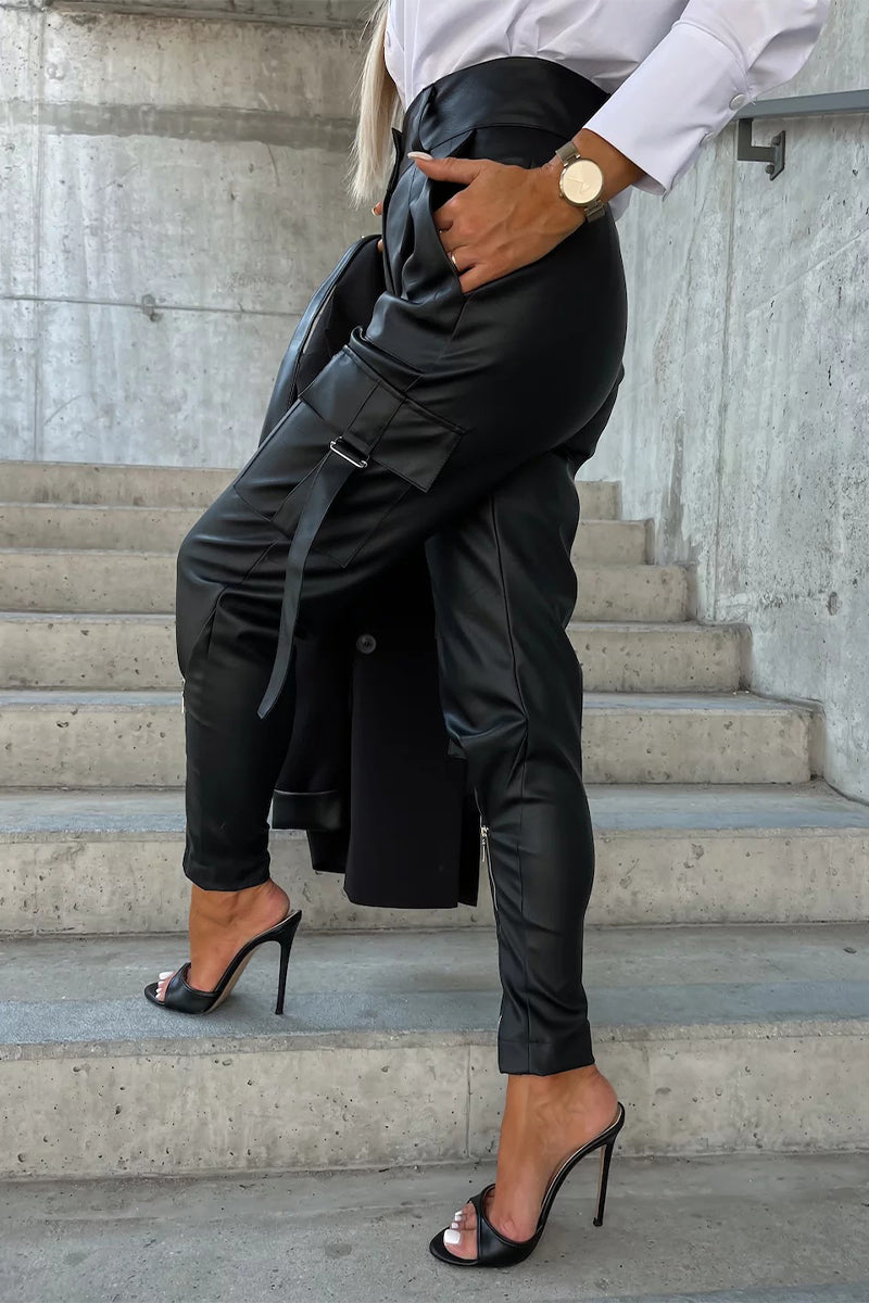 Details: Material: PU Style: Casual Pattern Type: Solid Element: Pocket, Zipper Fit Type: Regular Waist Type: High Waist Closure Type: Zipper Hasp Profile: Pencil Type: Solid Color Size(in) Waist Hips Bottom Length S 27.6 37 40.6 M 29.1 38.6 40.9 L 31.5 40.9 41.3 XL 33.9 43.3 41.7 Tips: Due to the many variations in…