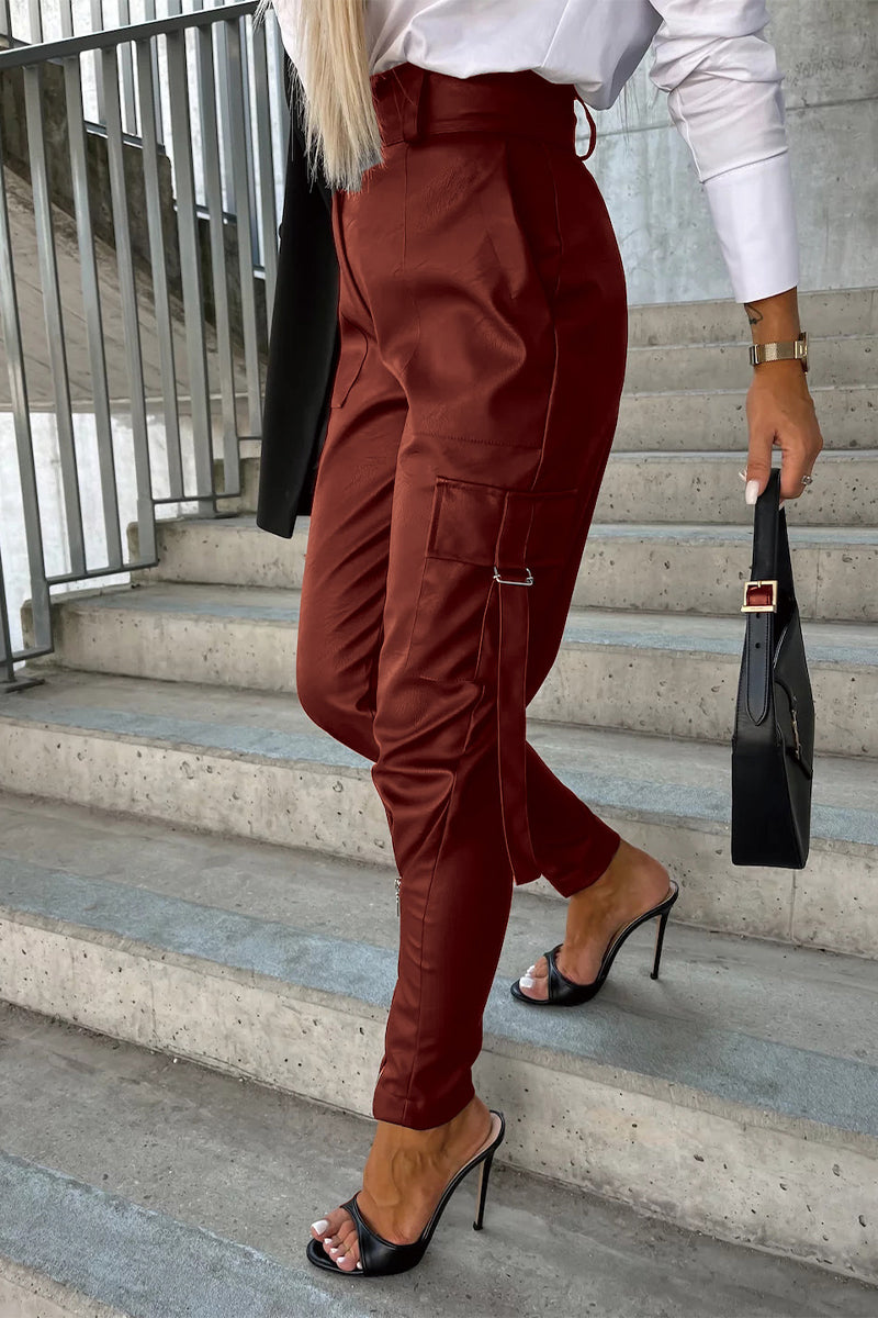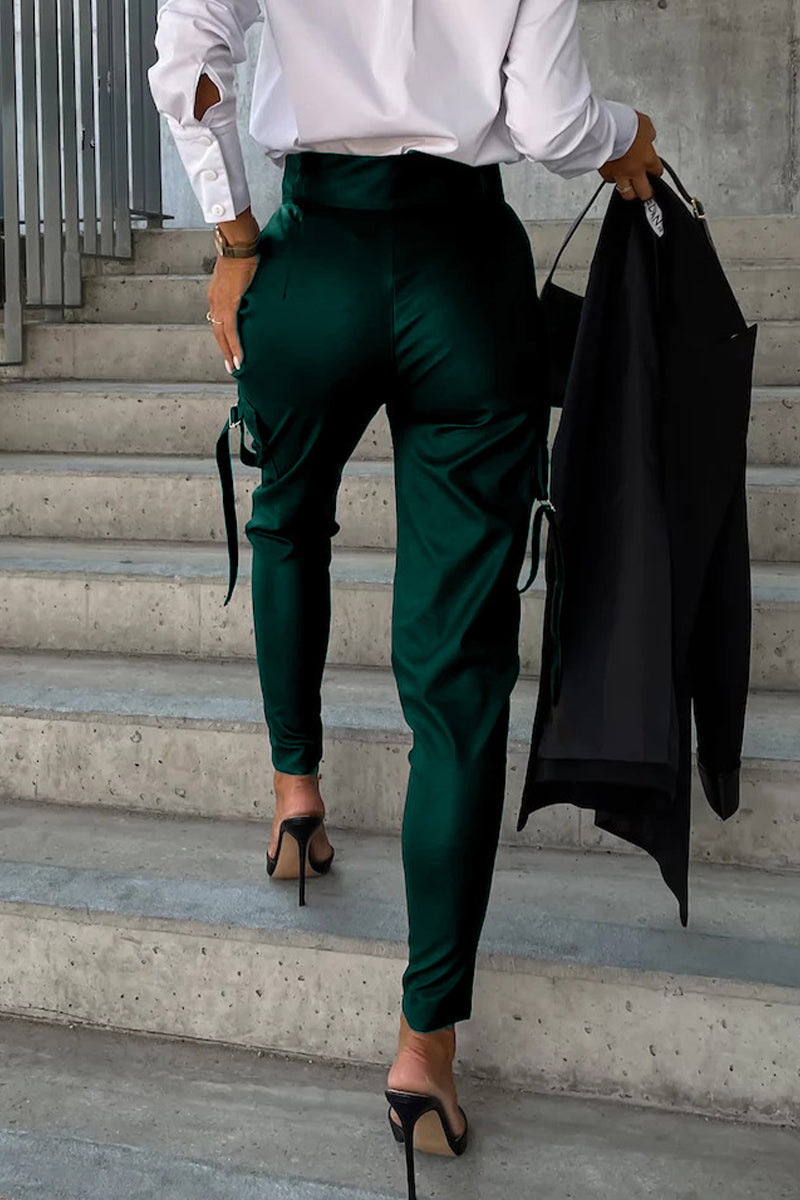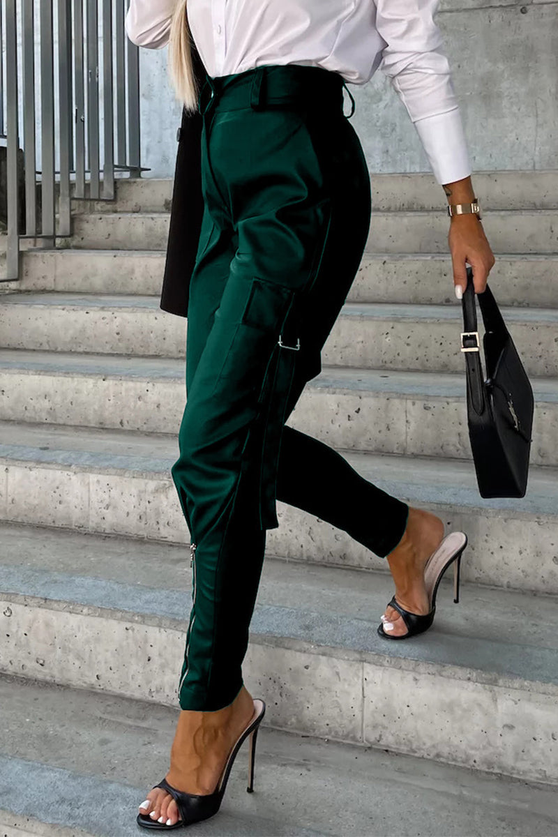 Casual Solid Pocket Zipper Regular High Waist Pencil Bottoms(5 Colors)
